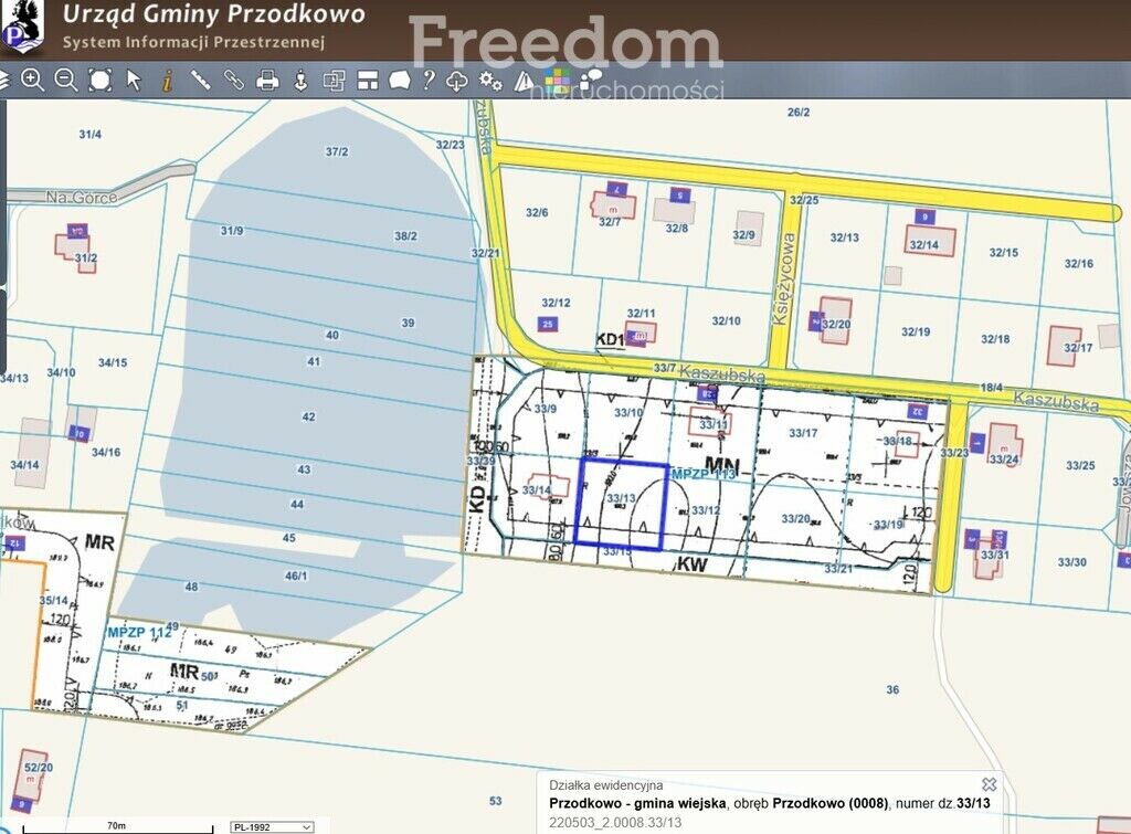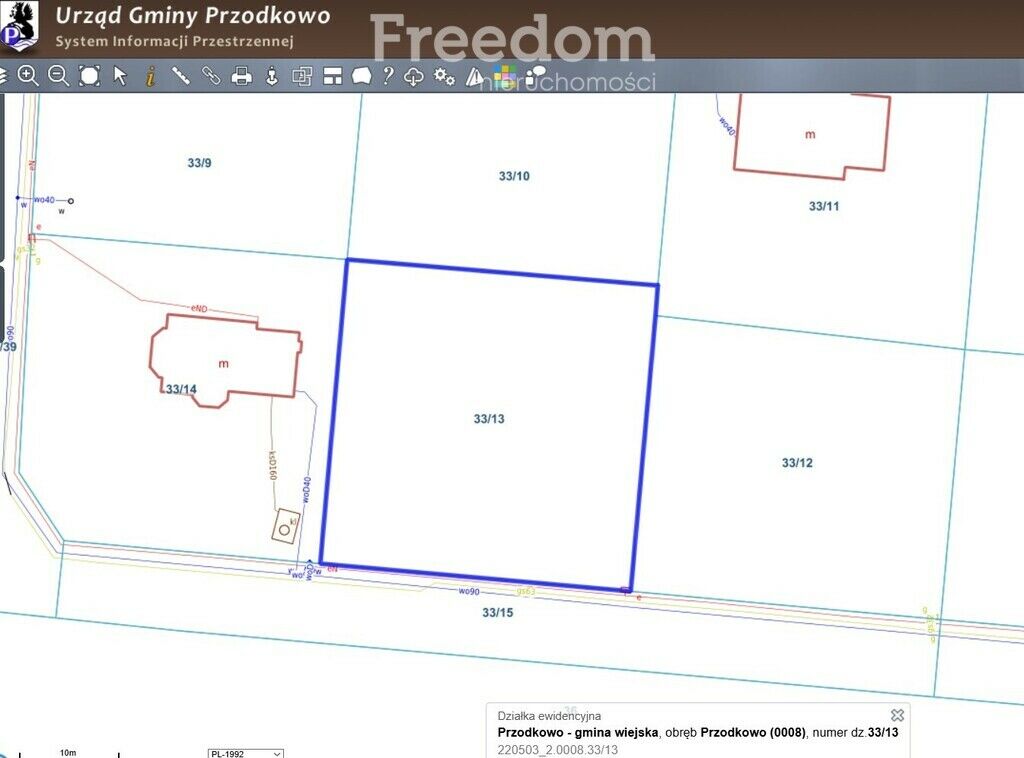 NIERUCHOMOŚĆ:- działka nr ewidencyjny 33/13 – powierzchnia 1 085 m2, obręb